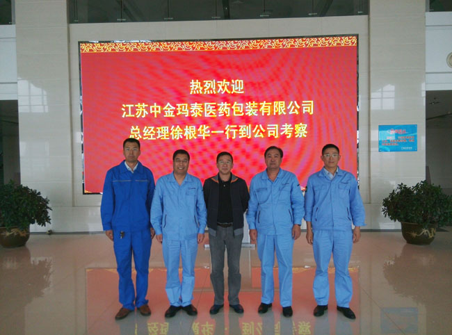 10月8日上午,江蘇中金瑪泰醫藥包裝有限公司總經(jīng)理徐根華一行到公司考察,董事長(cháng)李躍民、總經(jīng)理郭峰陪同。