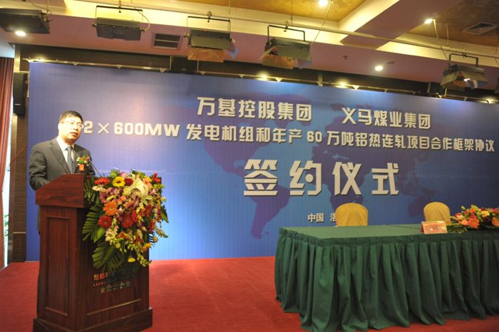 1月15日,義馬煤業(yè)集團股份有限公司與萬(wàn)基控股集團有限公司在洛陽(yáng)舉行2×600MW發(fā)電機組和年產(chǎn)60萬(wàn)噸鋁熱軋項目合作框架協(xié)議簽約儀式。省委常委、洛陽(yáng)市委書(shū)記陳雪楓及市領(lǐng)導尚朝陽(yáng)、陳向平、高義,新安縣領(lǐng)導王玉峰、郅書(shū)安、秦智琛、郭軒子、樊棟梁、康燕、邵樂(lè )毅和河南能源化工集團董事長(cháng)陳祥恩、義煤集團董事長(cháng)馬正蘭、萬(wàn)基控股集團董事長(cháng)李躍民、總經(jīng)理郭峰及市縣政府有關(guān)部門(mén)等近百人參加了簽約儀式。