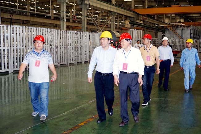 2016年5月5日上午,駐新市人大代表小組到萬(wàn)基鋁加工公司進(jìn)行工業(yè)興縣、市場(chǎng)供給側改革調研,公司董事長(cháng)李躍民等陪同。