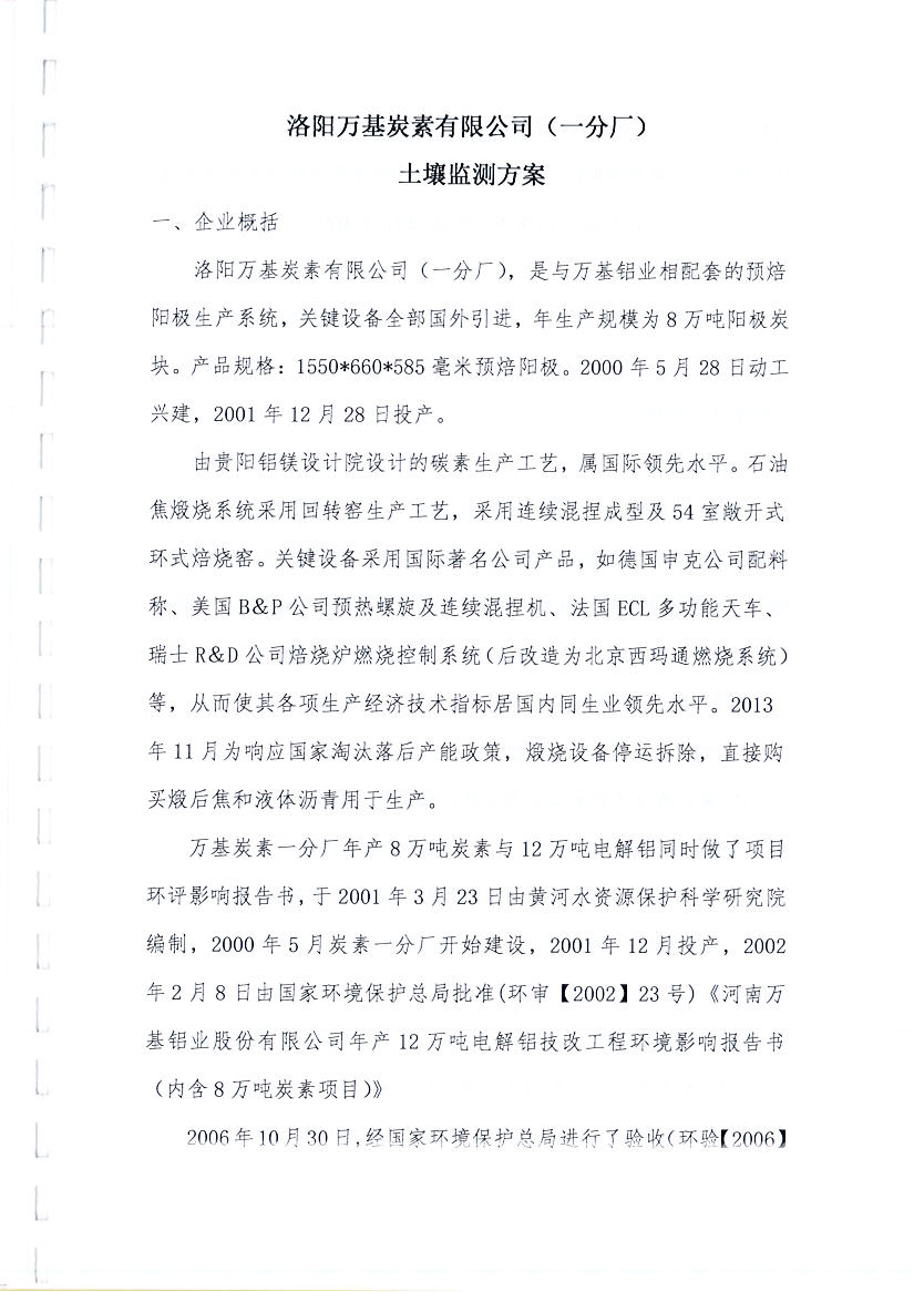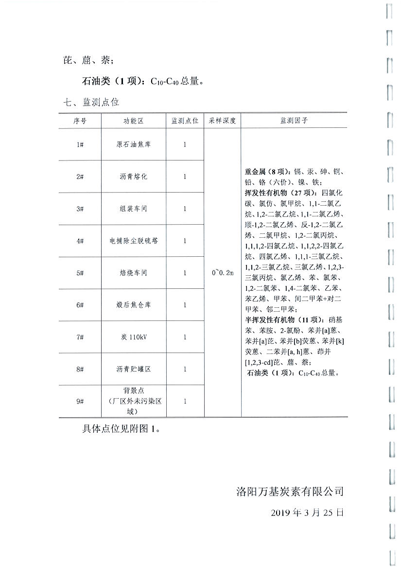 河南萬(wàn)基炭素有限公司(一分廠(chǎng))2019土壤自行檢測方案