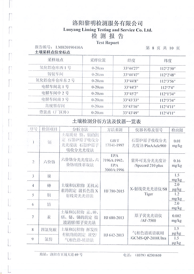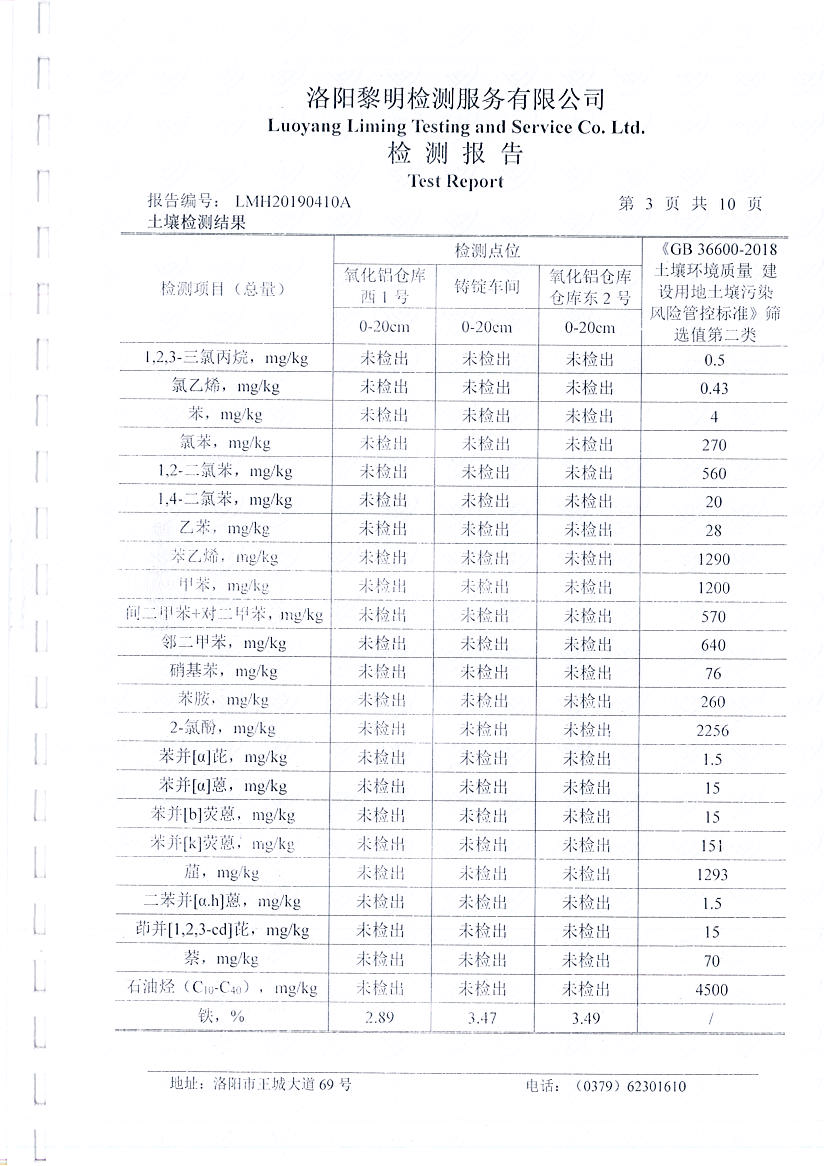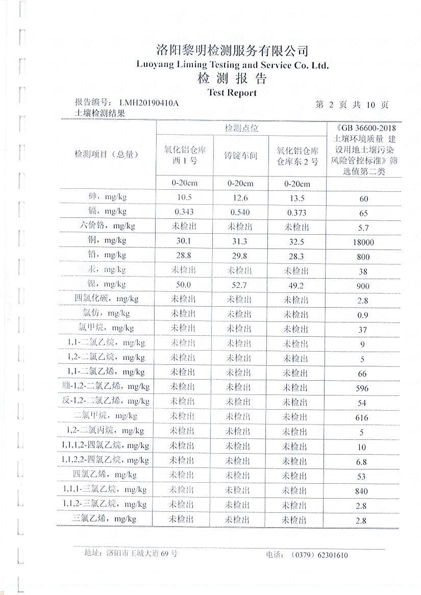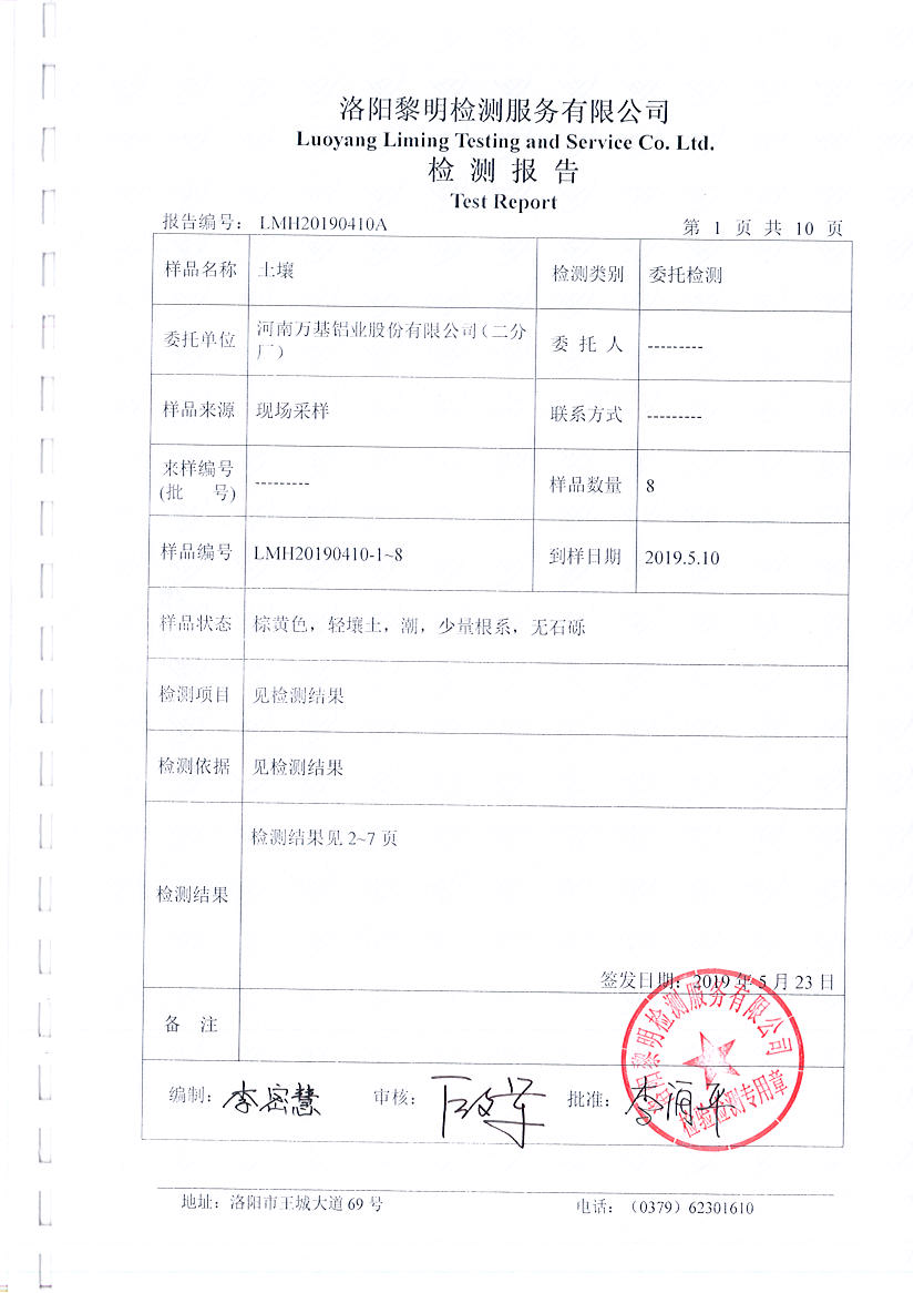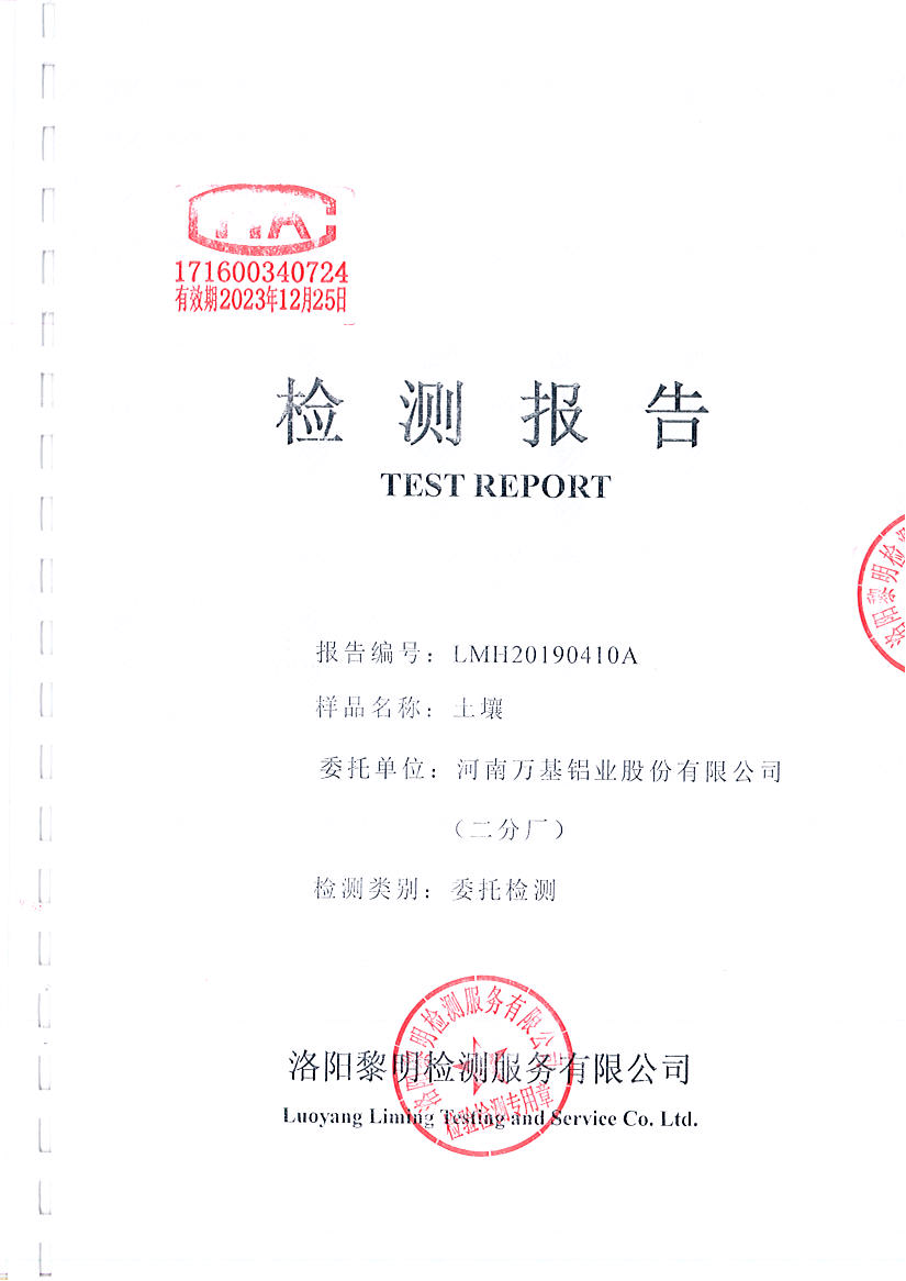河南萬(wàn)基鋁業(yè)股份有限公司(二分廠(chǎng))土壤檢測報告公示