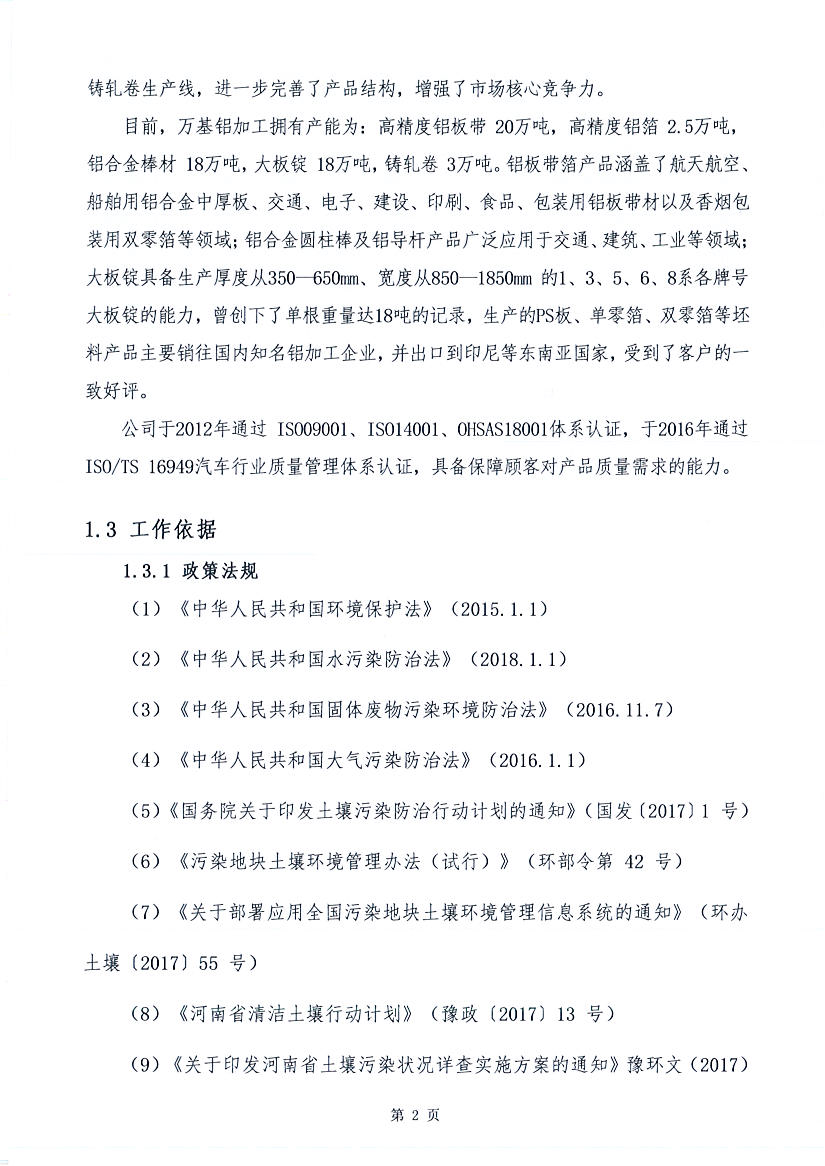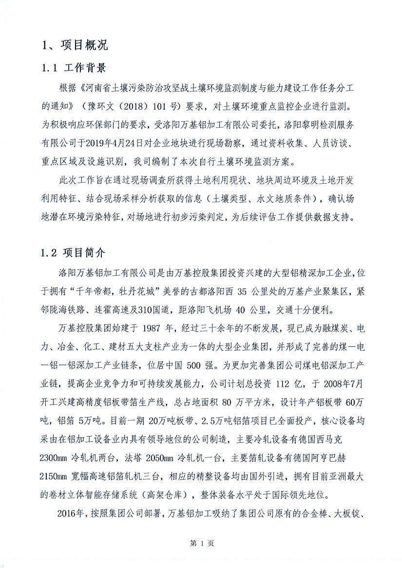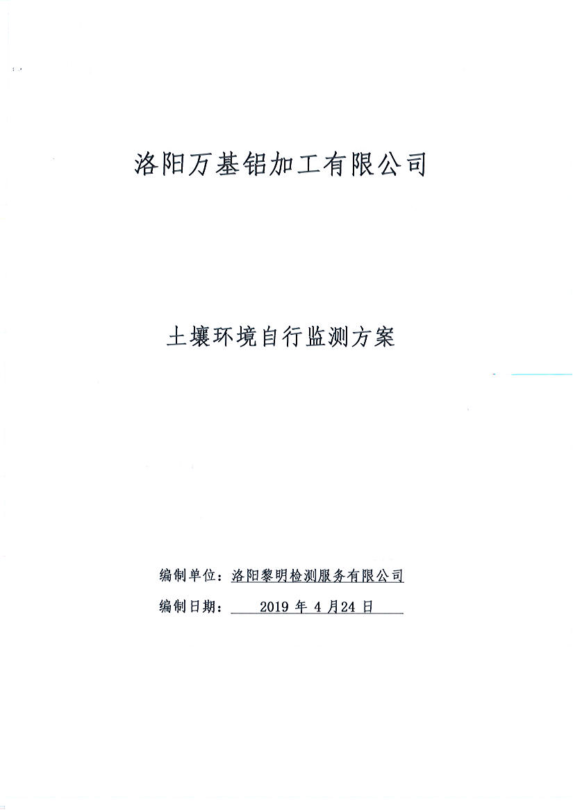 洛陽(yáng)萬(wàn)基鋁加工有限公司2019年土壤自行檢測方案