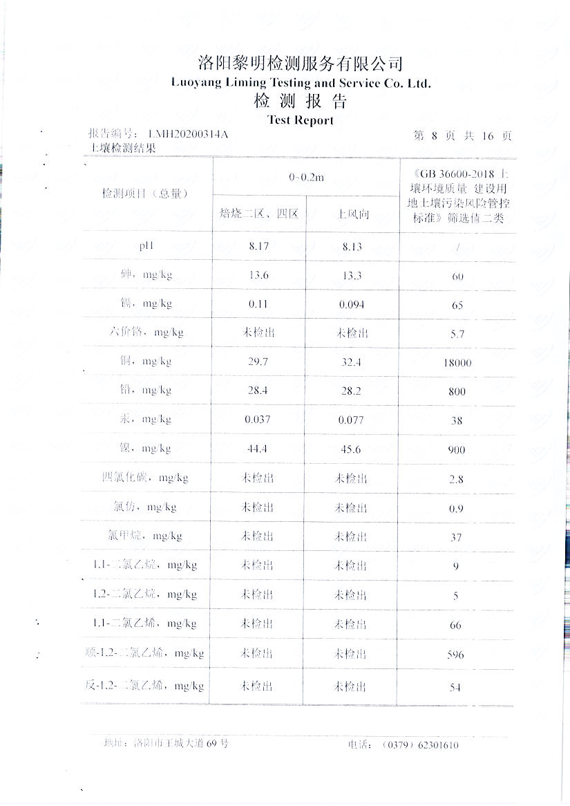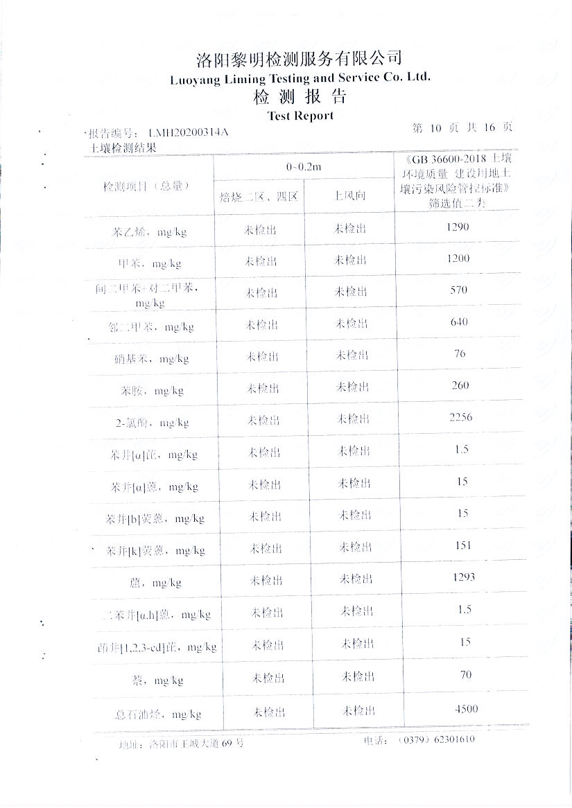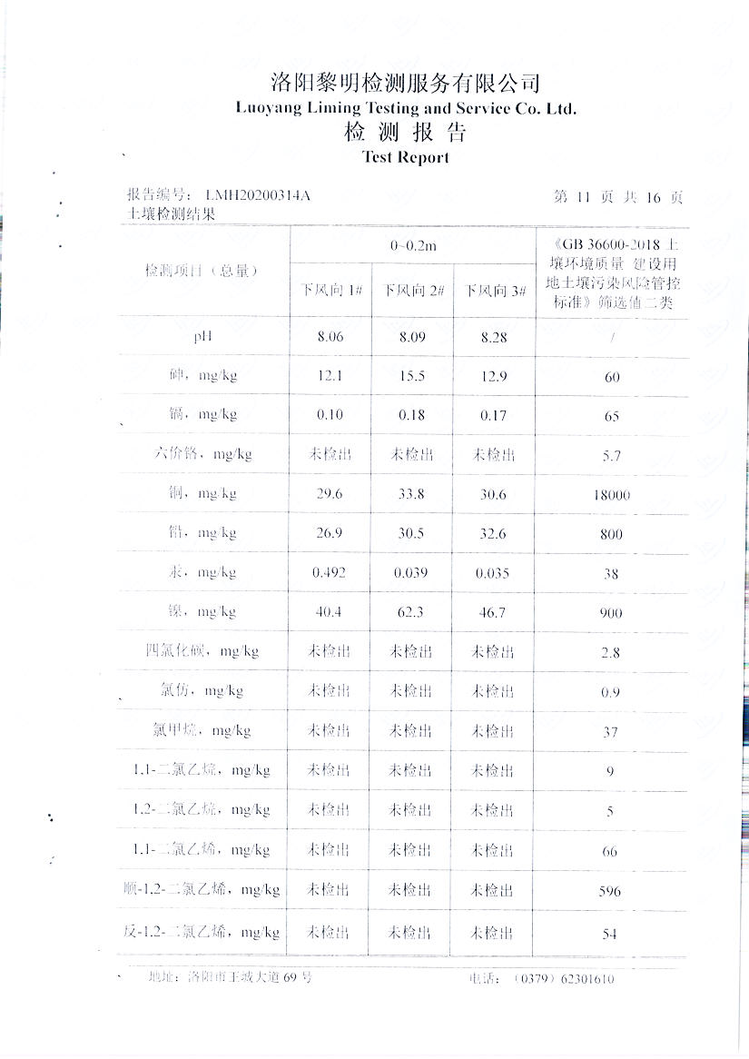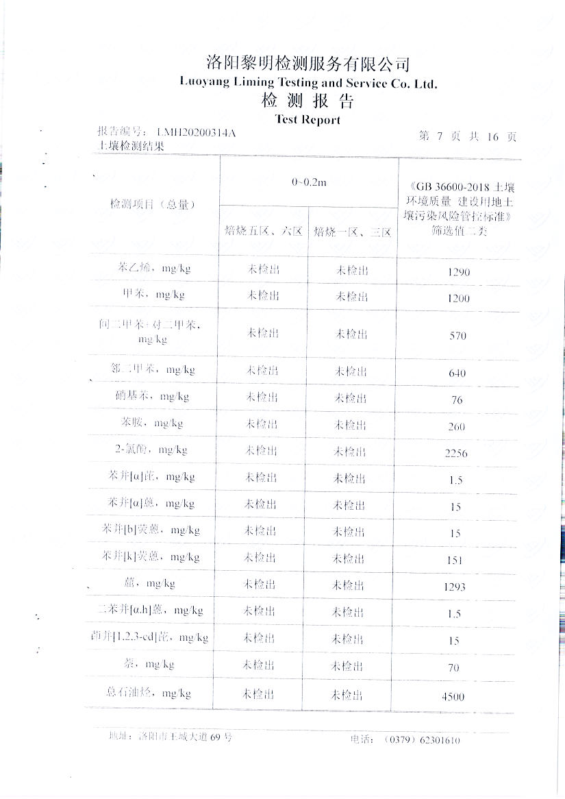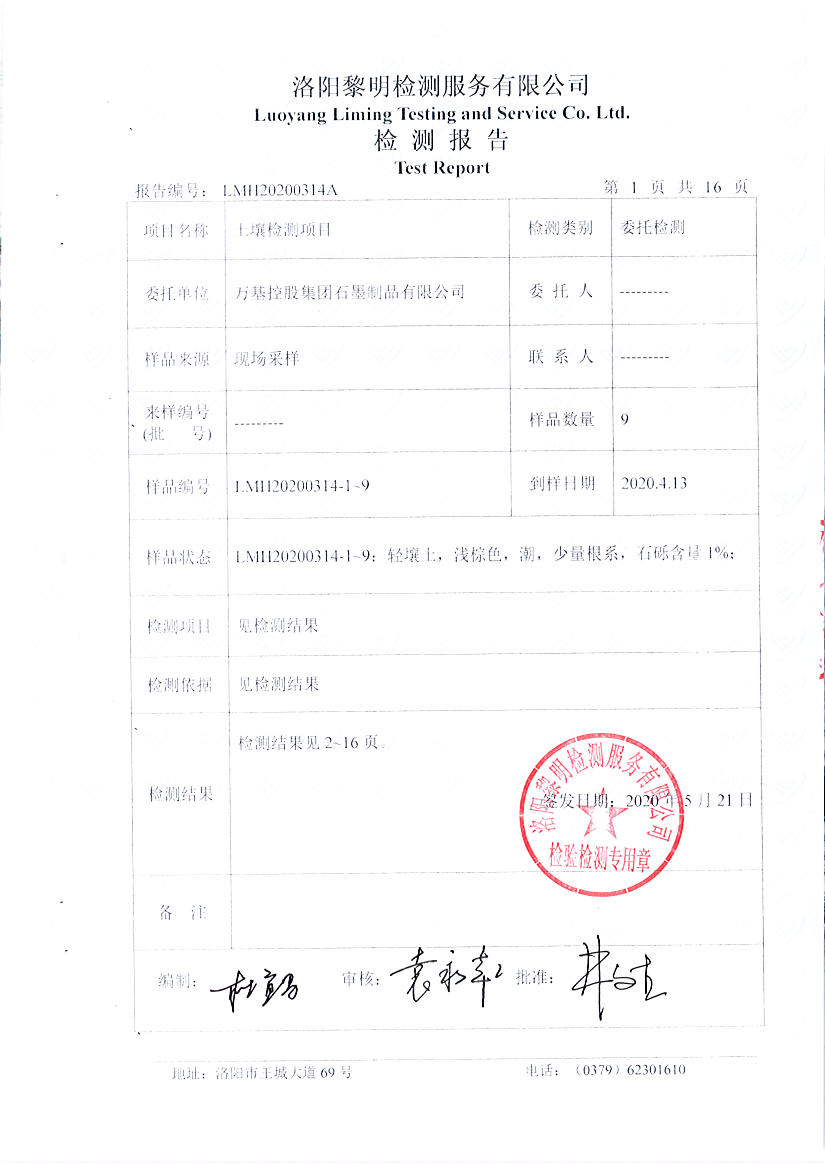 萬(wàn)基控股集團石墨制品有限公司2020土壤自行檢測報告