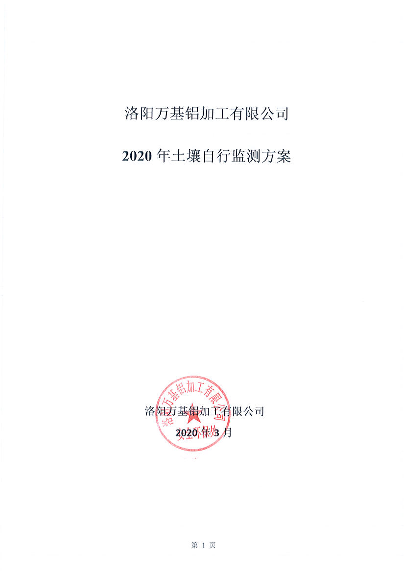 洛陽(yáng)萬(wàn)基鋁加工有限公司2020土壤自行監測方案