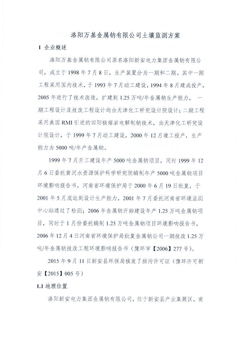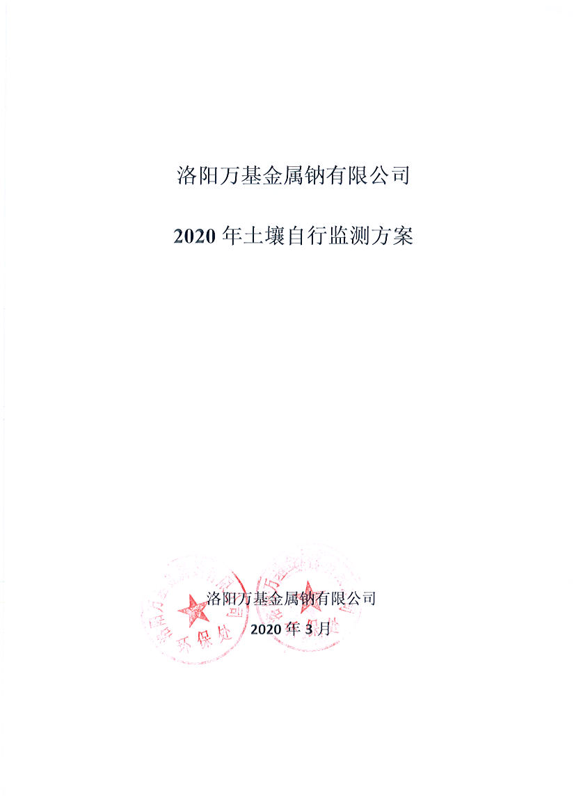 洛陽(yáng)萬(wàn)基金屬鈉有限公司2020土壤自行監測方案