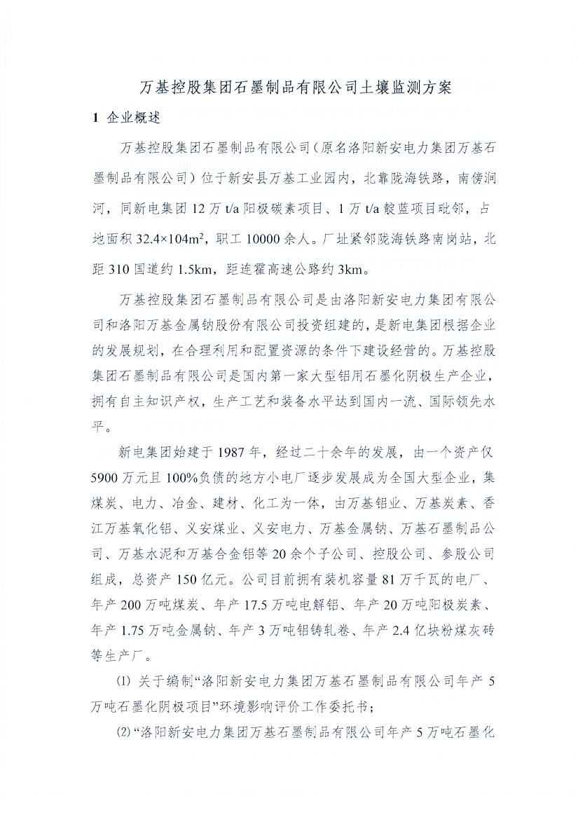 萬(wàn)基控股集團石墨制品有限公司2020土壤自行監測方案
