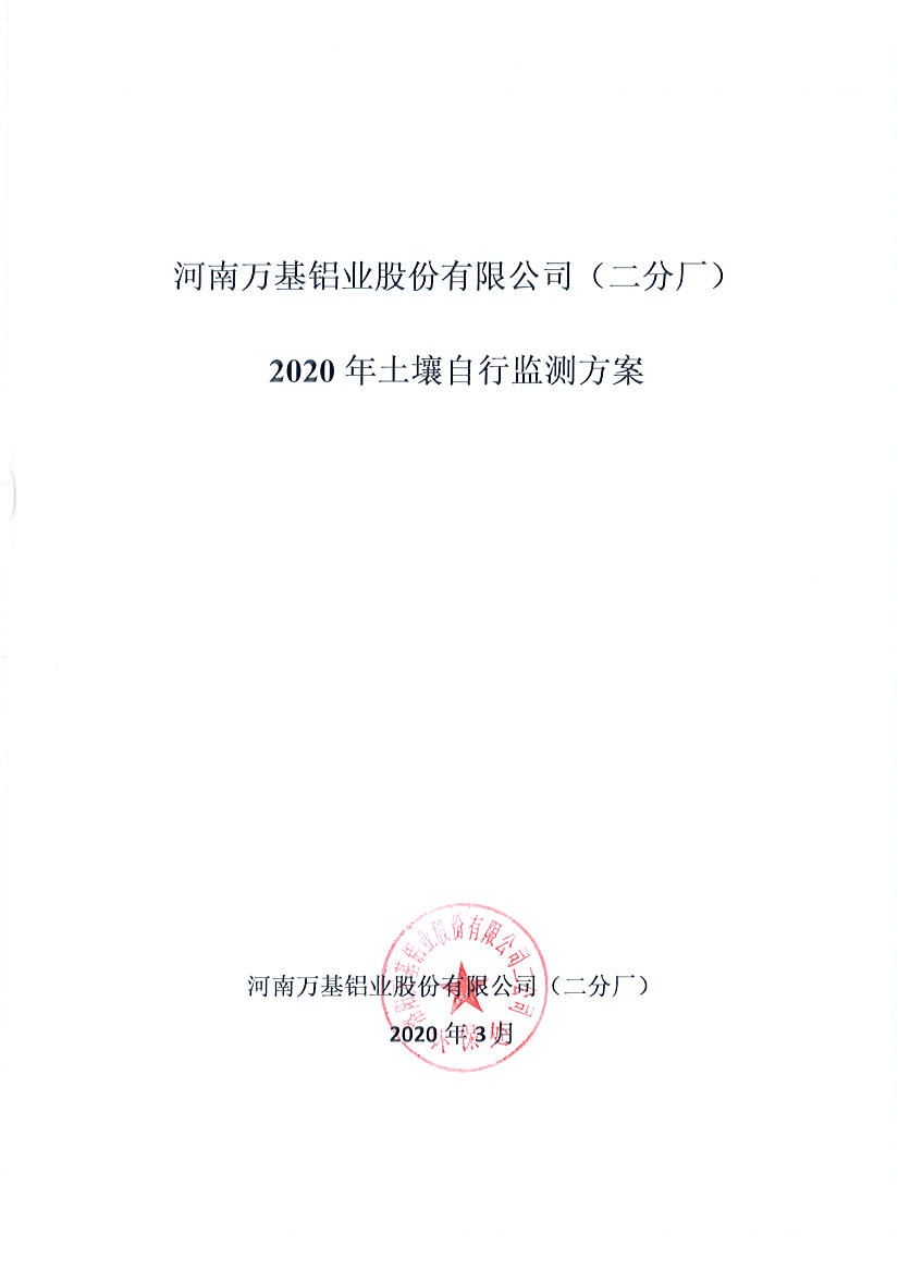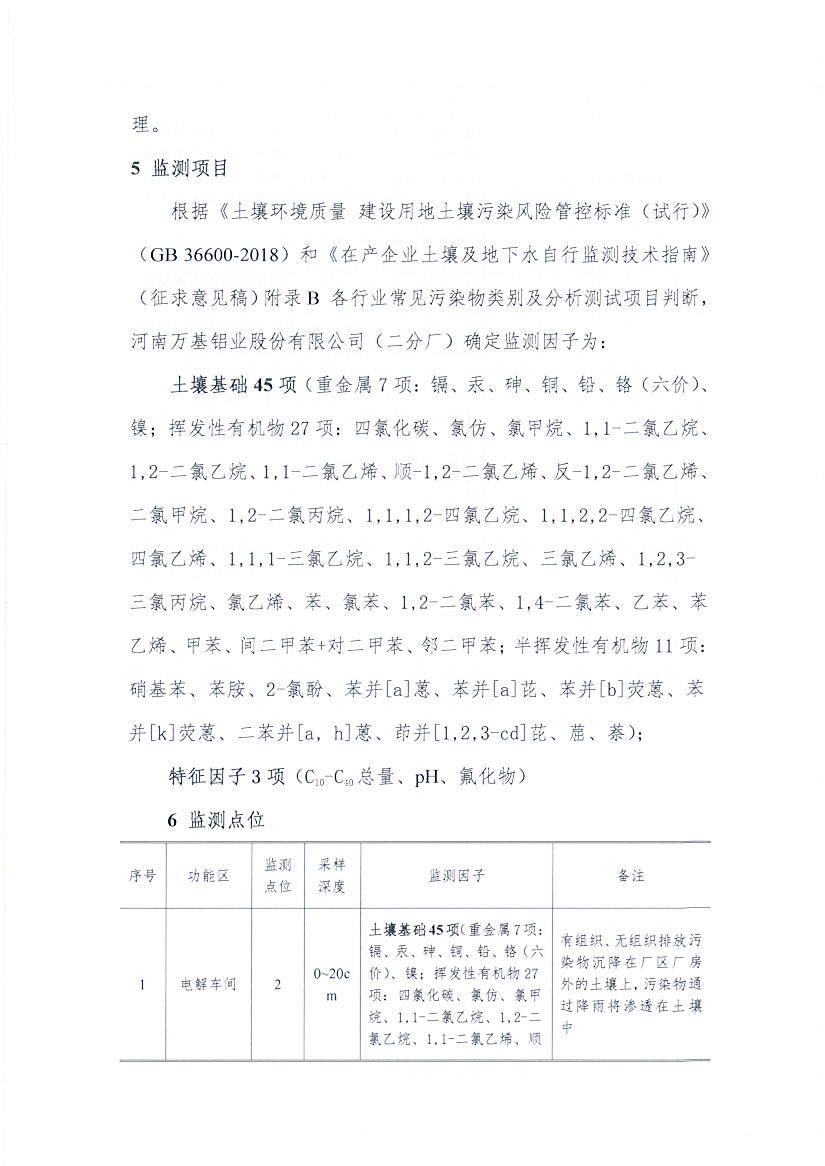 河南萬(wàn)基鋁業(yè)股份有限公司(二分廠(chǎng))2020土壤自行監測方案
