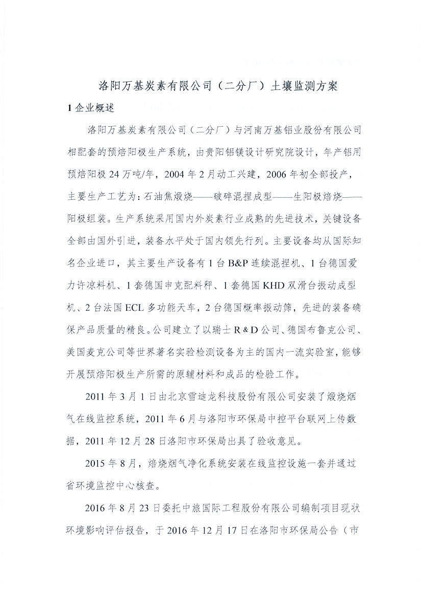 洛陽(yáng)萬(wàn)基炭素有限公司(二分廠(chǎng))2020土壤自行監測方案