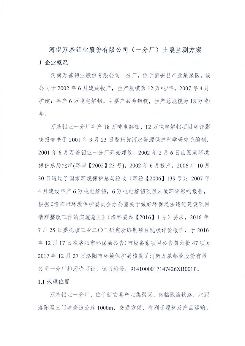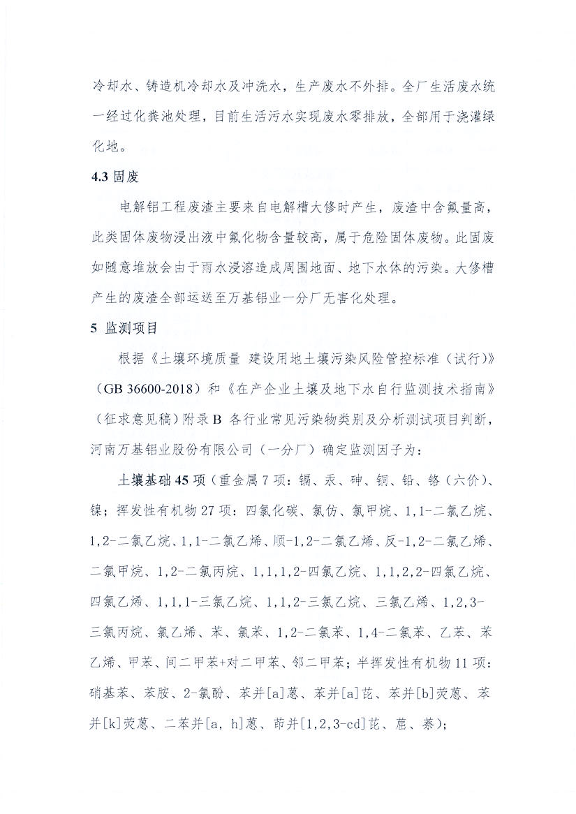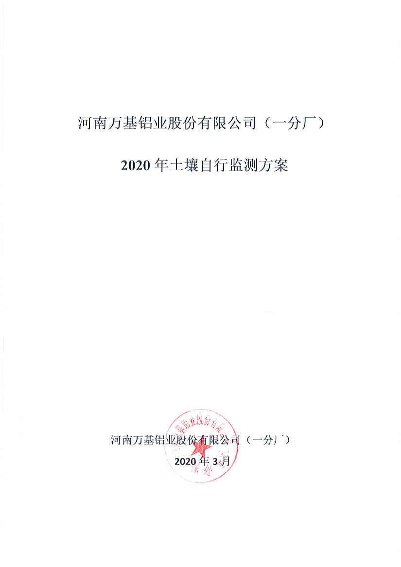 河南萬(wàn)基鋁業(yè)股份有限公司(一分廠(chǎng))2020土壤自行監測方案